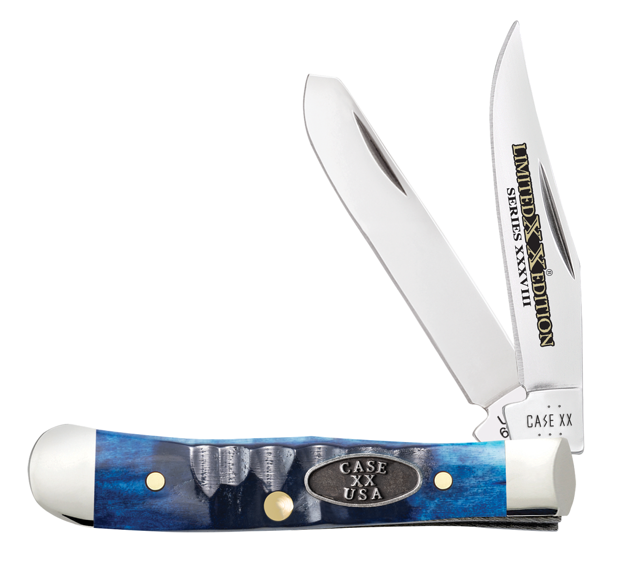Introducing the 2025 XX Limited Edition XXXVIII set is a true celebration of craftsmanship and innovation. This exclusive collection showcases the debut of our Gator Jig Handle. Each knife features a Case XX USA Oval Pewter Shield that perfectly compliments the deep Ocean Blue handle color, and mirror-polished Tru-Sharp™ surgical steel blades etched with a special “Limited XX Edition” embellishment.